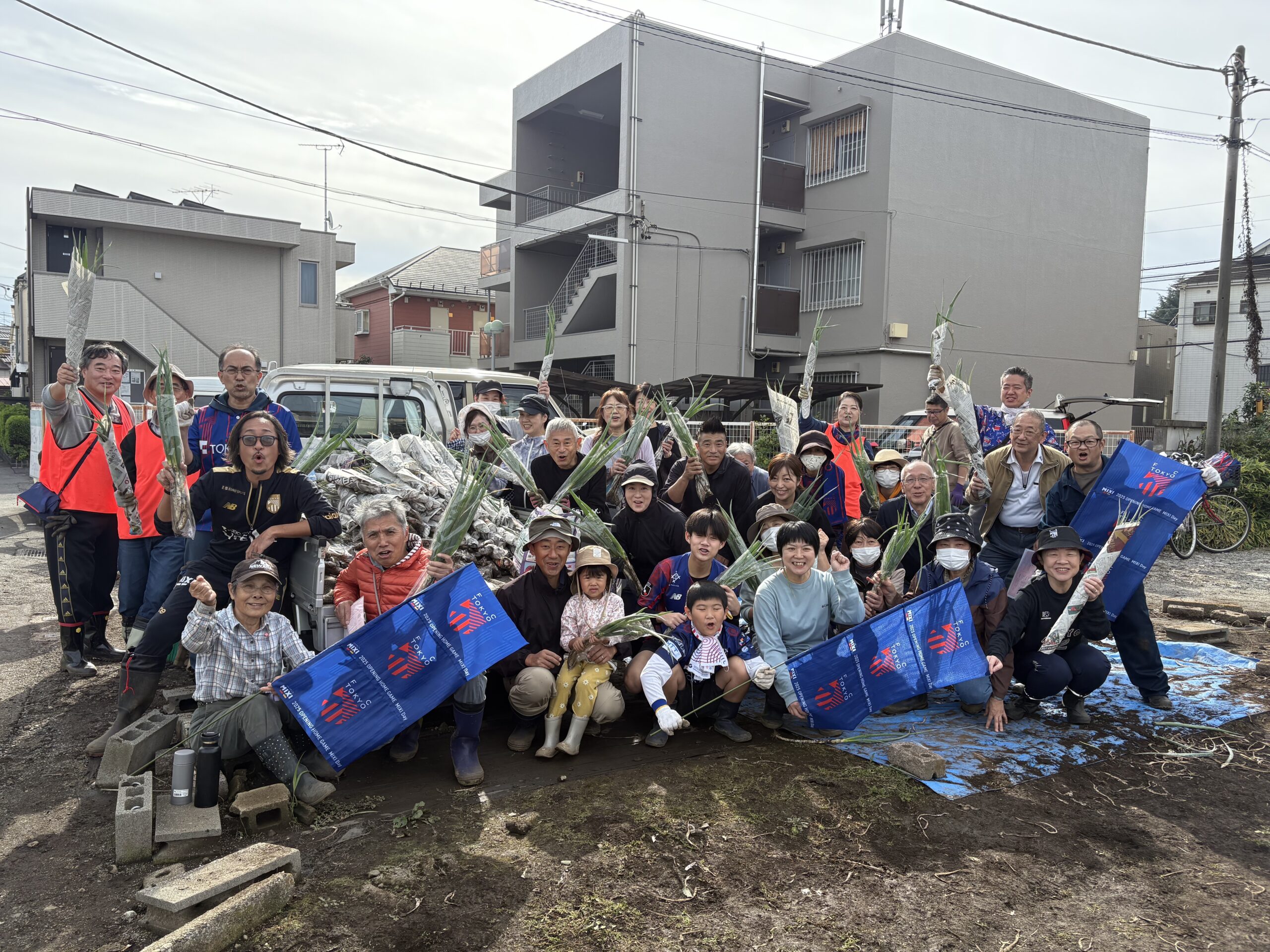 11月2日(日)8月、9月に続き、TSCのメンバーと飛田給自治会の方々と連携し、飛田給にある畑で一緒に農作業を実施。さつまいもとネギを収穫しました。翌日(3日)は飛田給自治会の運動会に石川CGが参加し、地域の方々に収穫したネギのプレゼンターを務めました。